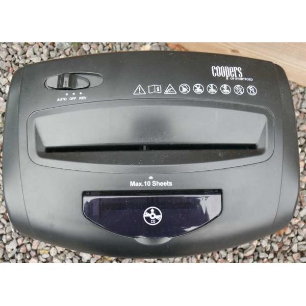 It takes up to ten sheets at once, and can also shred CDs and bank cards.