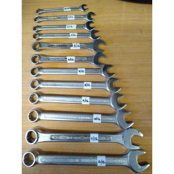 Both ends (ring and open end) same sizing on each combination spanner. White labelling.