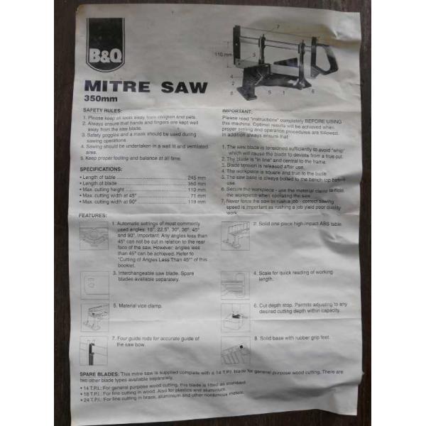 Contains: Saw with blade. Base with vice clamp and guide rods. Instruction booklet. Box.